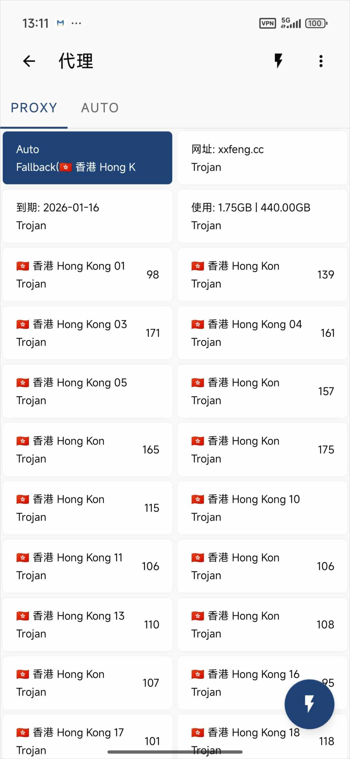 点击软件主界面的代理,进入Clash节点列表页面,选择合适的节点并选中连接,如下图所示。